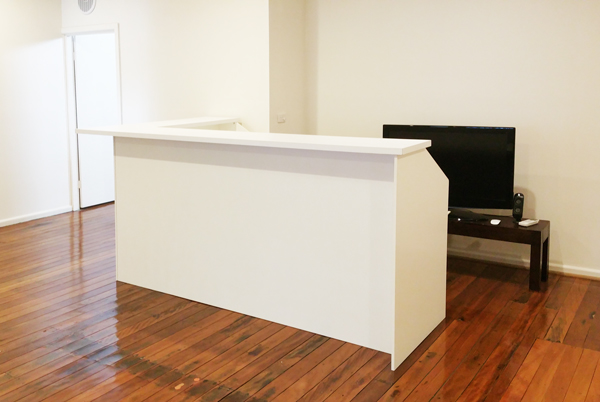 - Trade counter on white timber floor