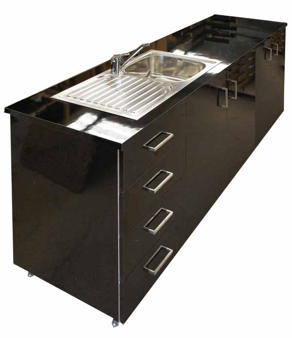 This small kitchen is ideal for offices where space is limited and the kitchen shares the office space. Gloss black laminate, stainless steel handles, Stainless steel sink and flick mixer tap are included in the price. This kitchenette black gloss will look good in any office.