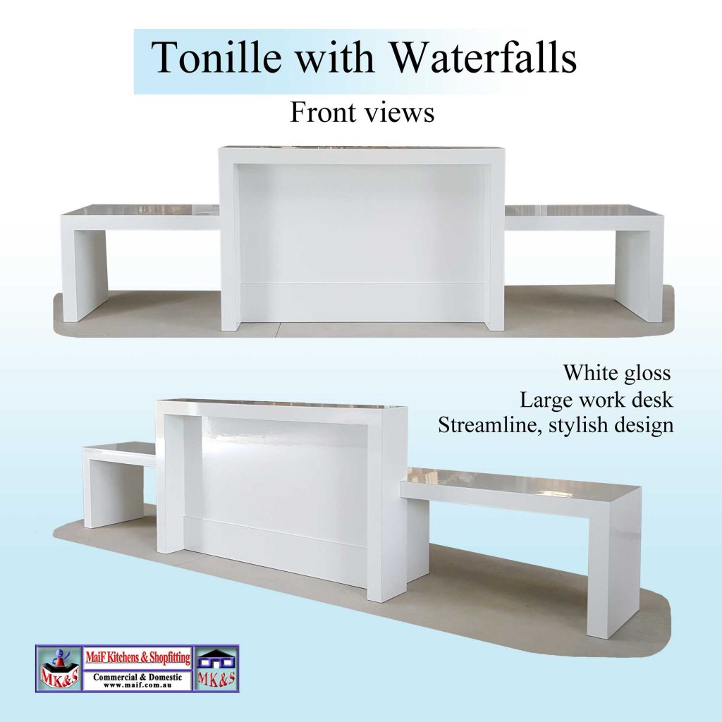 This desk has the look of a Tonnille Desk with waterfalls coming off both sides.